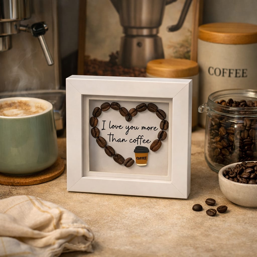 Coffee Bean Mini Heart Frame 'I love you more than coffee'