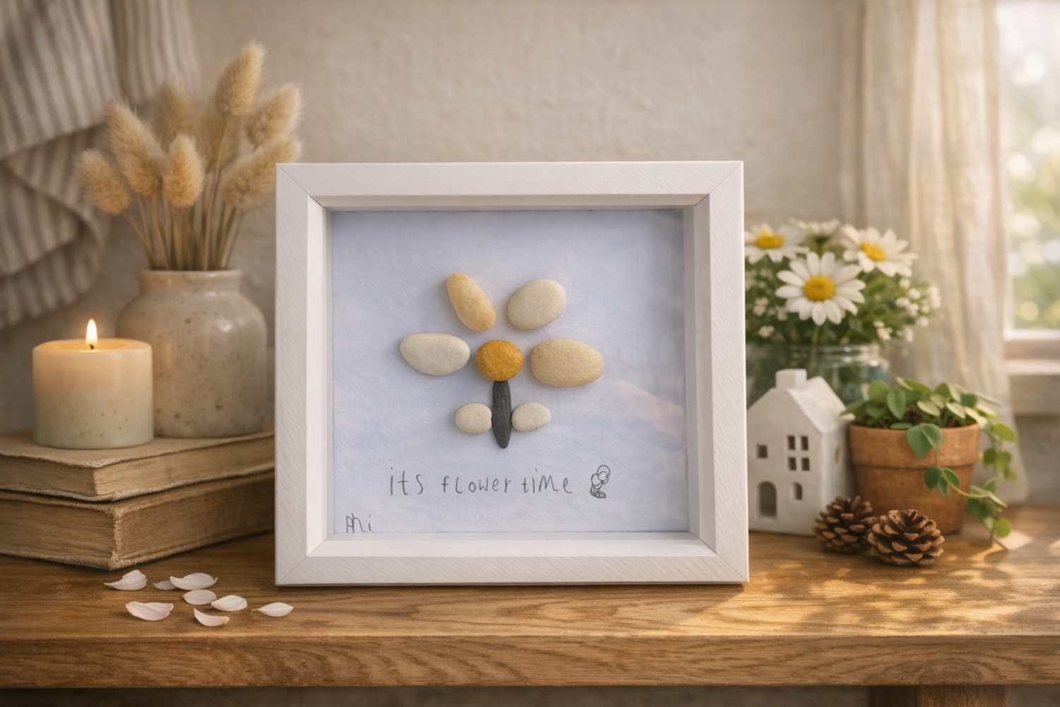 Born from a seaside moment and a handful of pebbles, we create art that captures connection, memory, and joy. Every frame is handmade with heart—celebrating nature’s quiet beauty and the stories that stones can tell. Rooted in family and inspired by imagination, we craft keepsakes that make people smile, pause, and feel something real. This is more than decor. It’s a little piece of love, ready to be shared